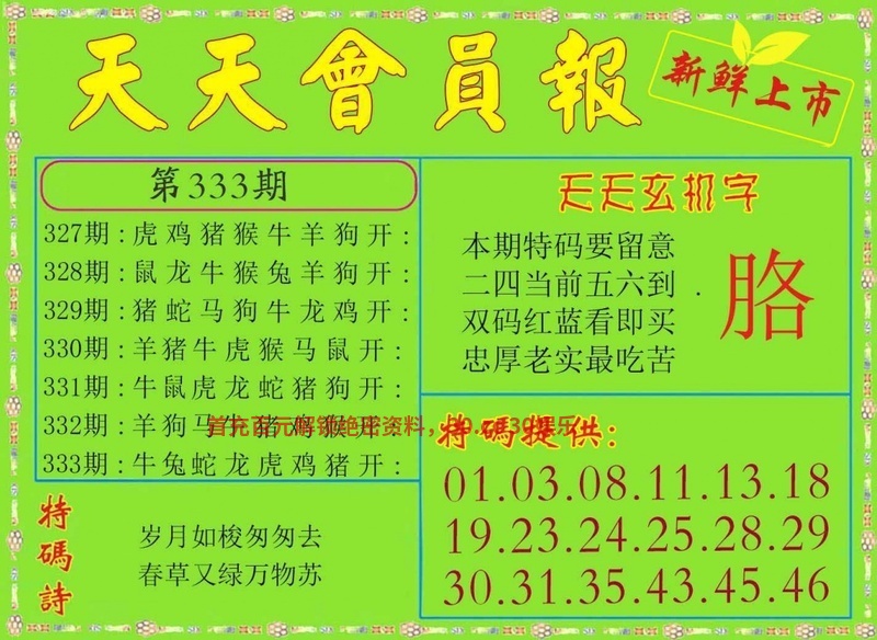 | 332期平特 | 鼠目寸光 | 开:鼠30 |