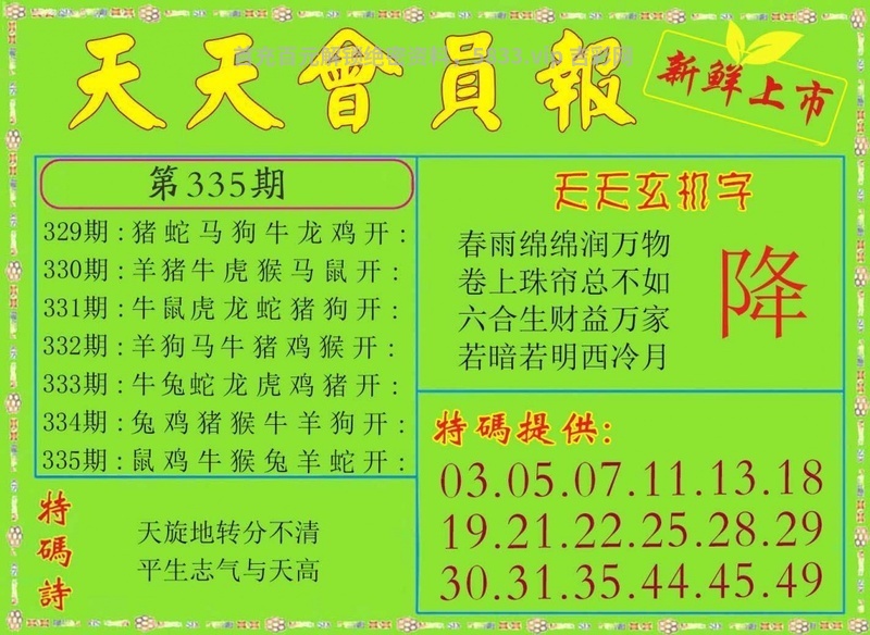 | 335期平特 | 兔起鹘落 | 开:兔03 |