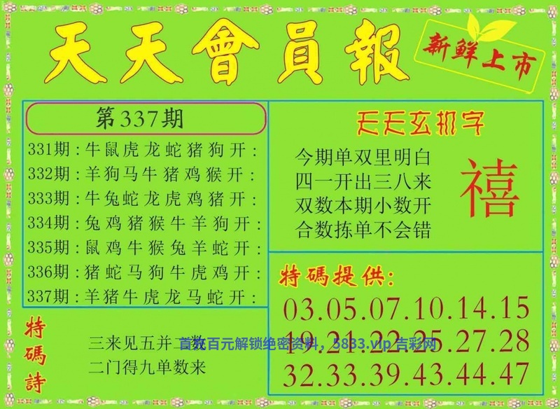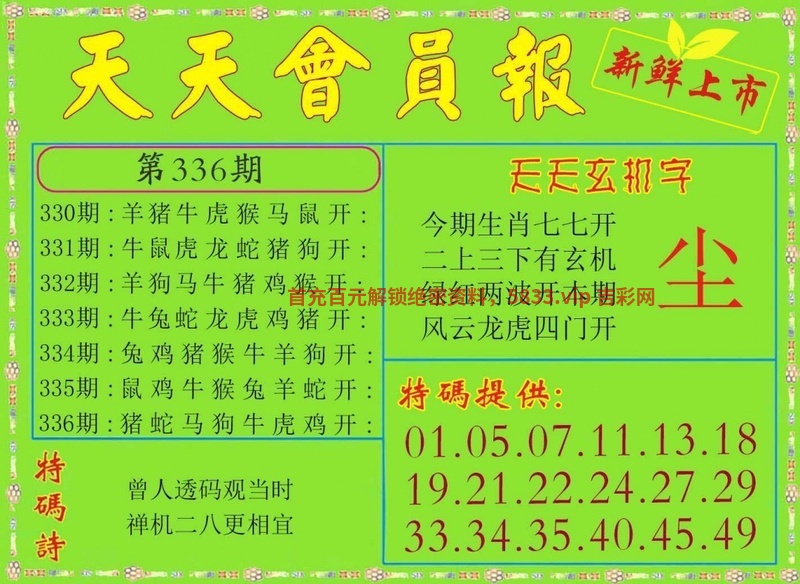| 338期平特 | 如虎添翼 | 开:發00 |